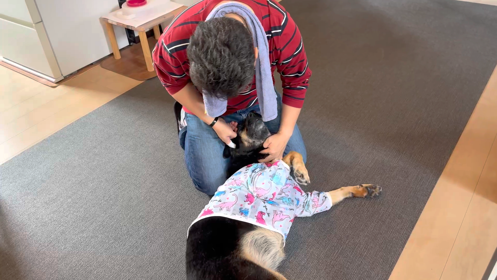 今日は愛犬のビューティーUPデー!さっそく耳の中から始めましょ♪…え、嫌?そんな時は、こうしちゃえ〜