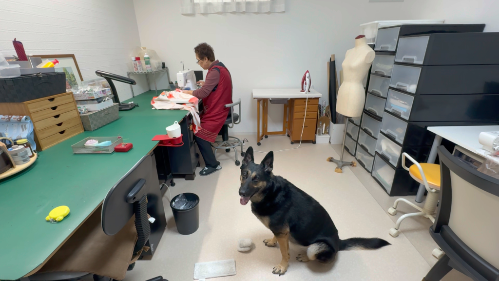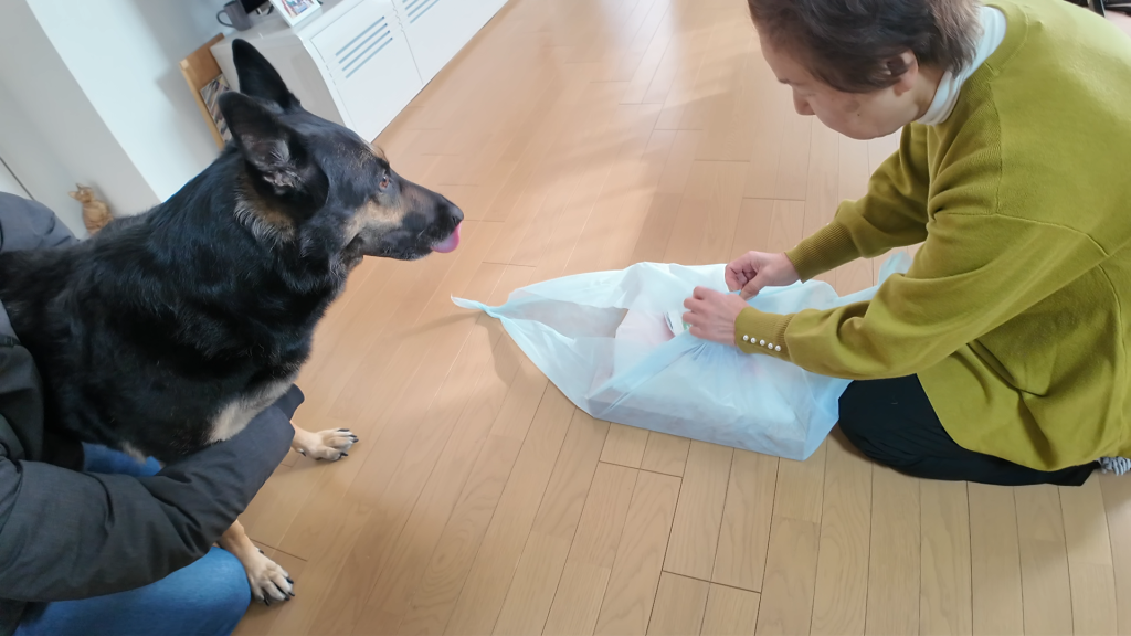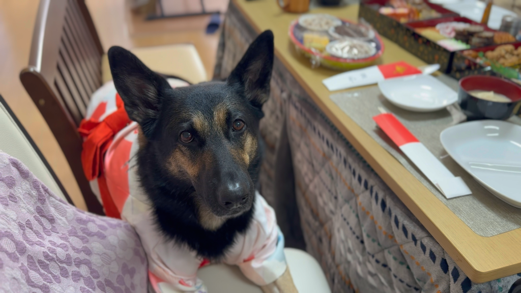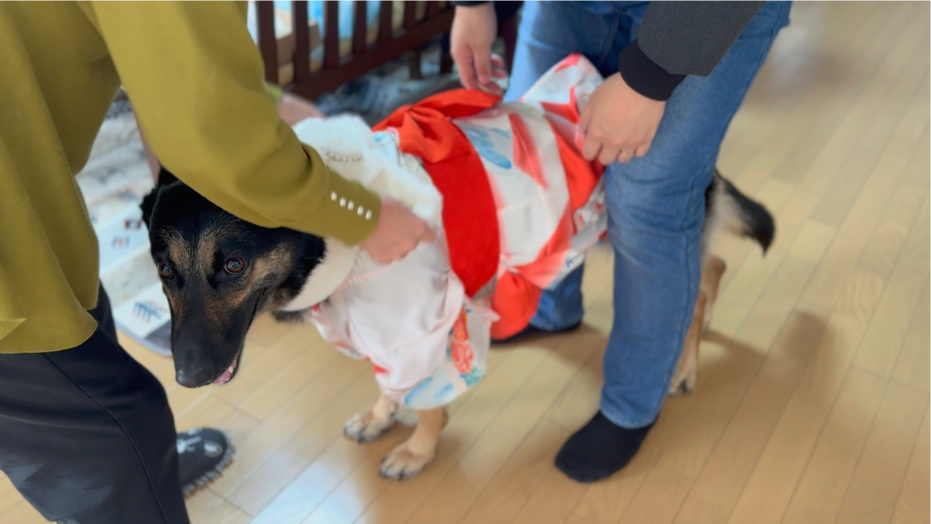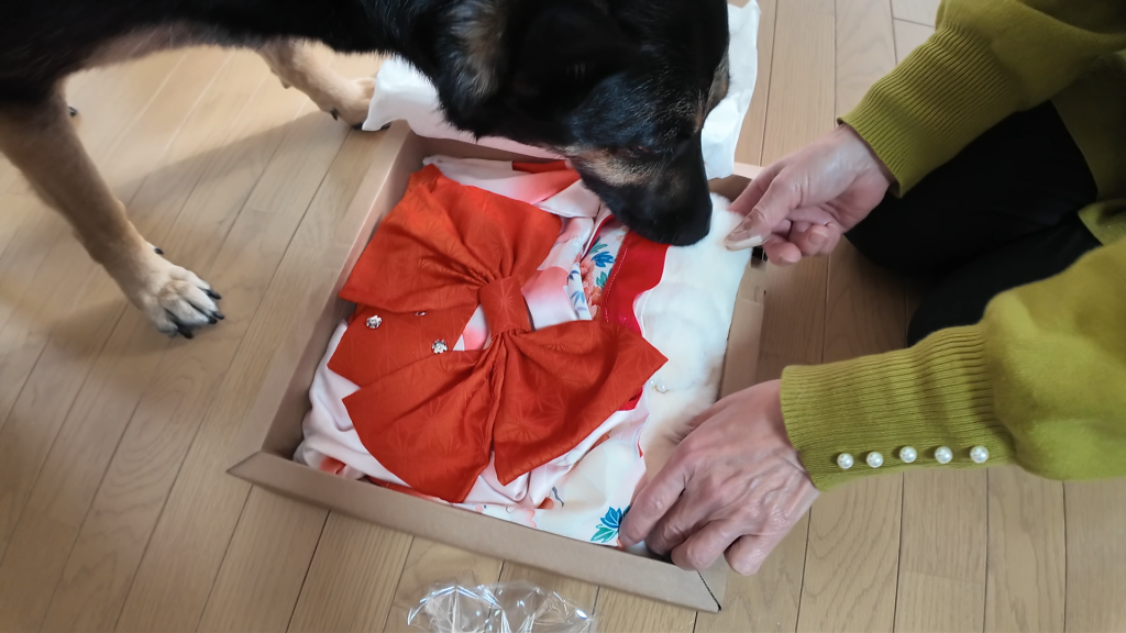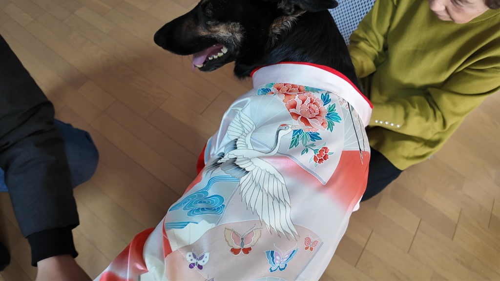 オババは私(飼い主♀)がお宮参りの時に着た着物をリメイクして、