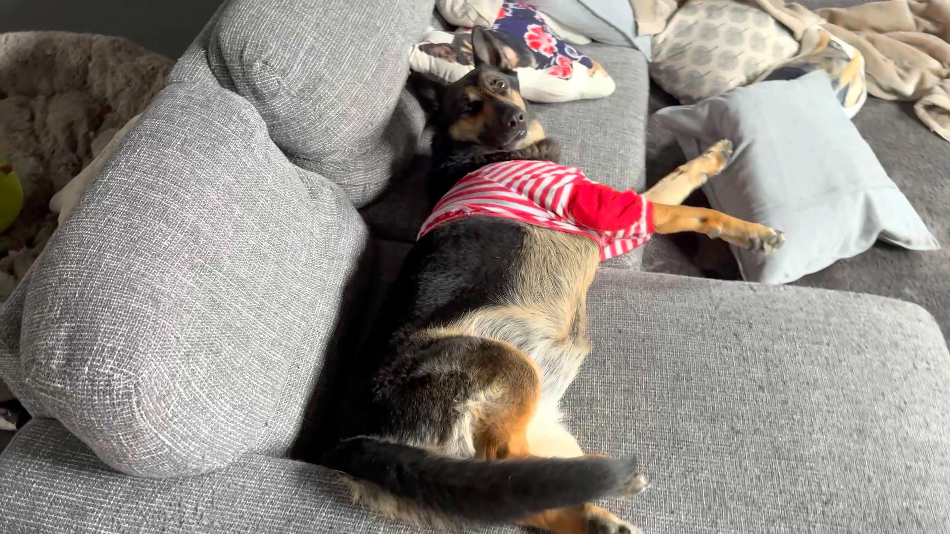 なんでやねんw「ひじ」置きを「ひざ」置きだと思ってる愛犬のソファの使い方がこちらw