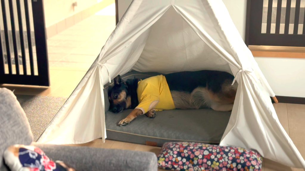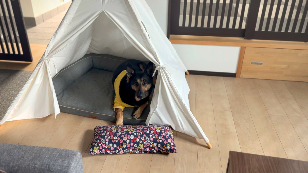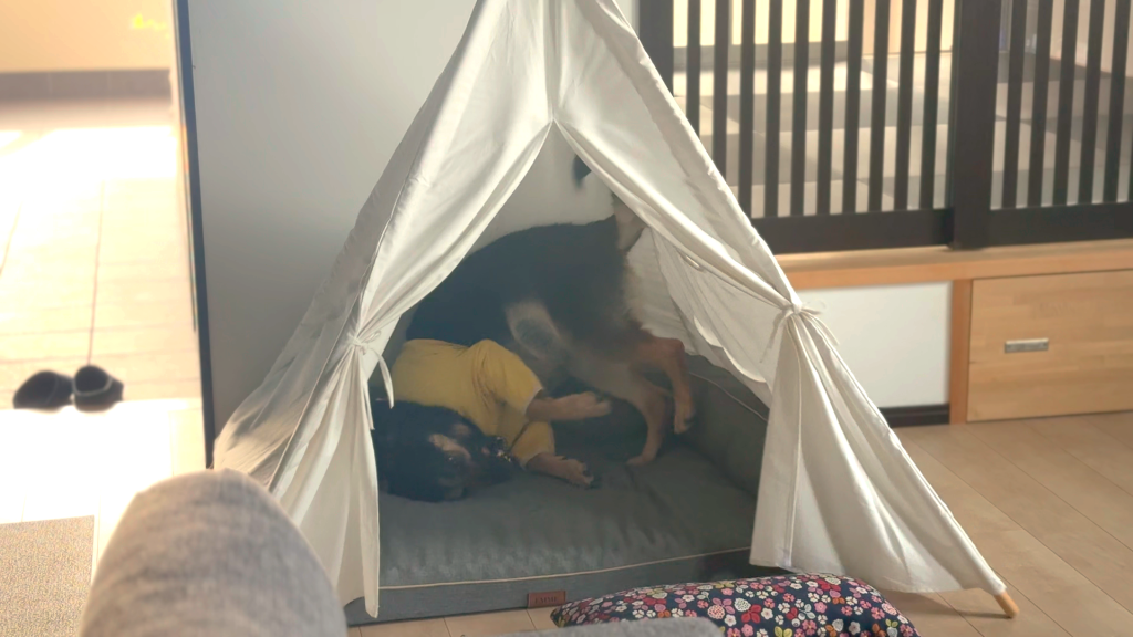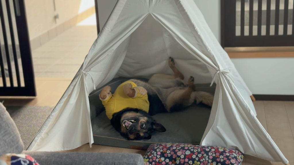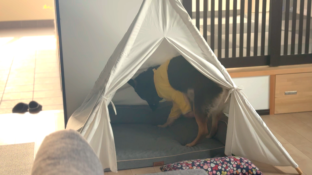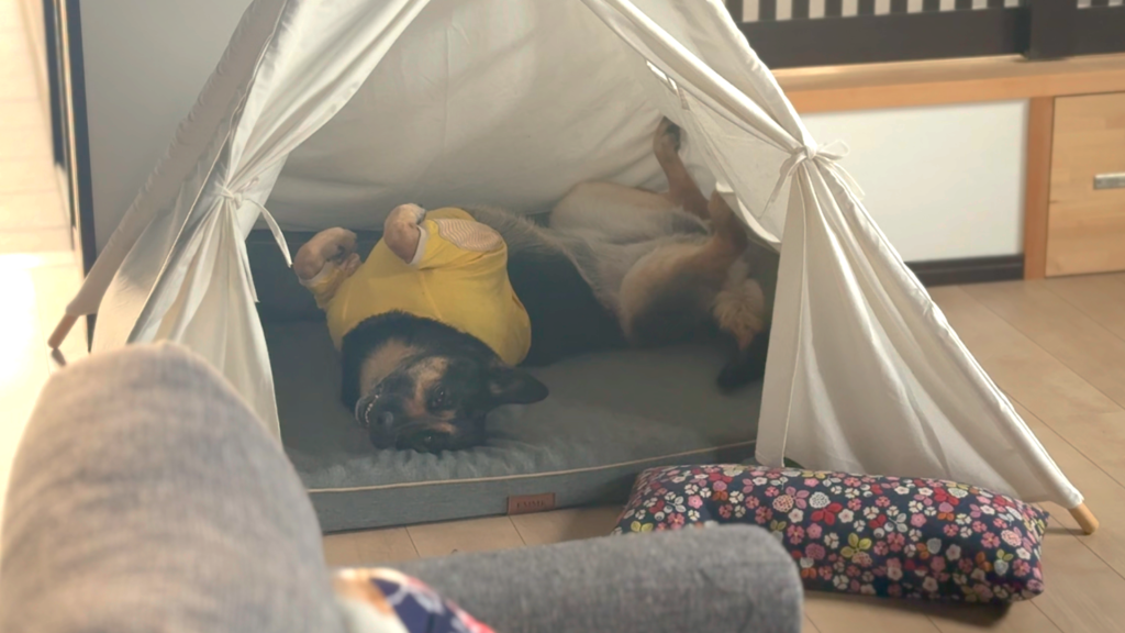最近、維桜さんがこんな体勢でくつろいでいることが多いことに気づきました。