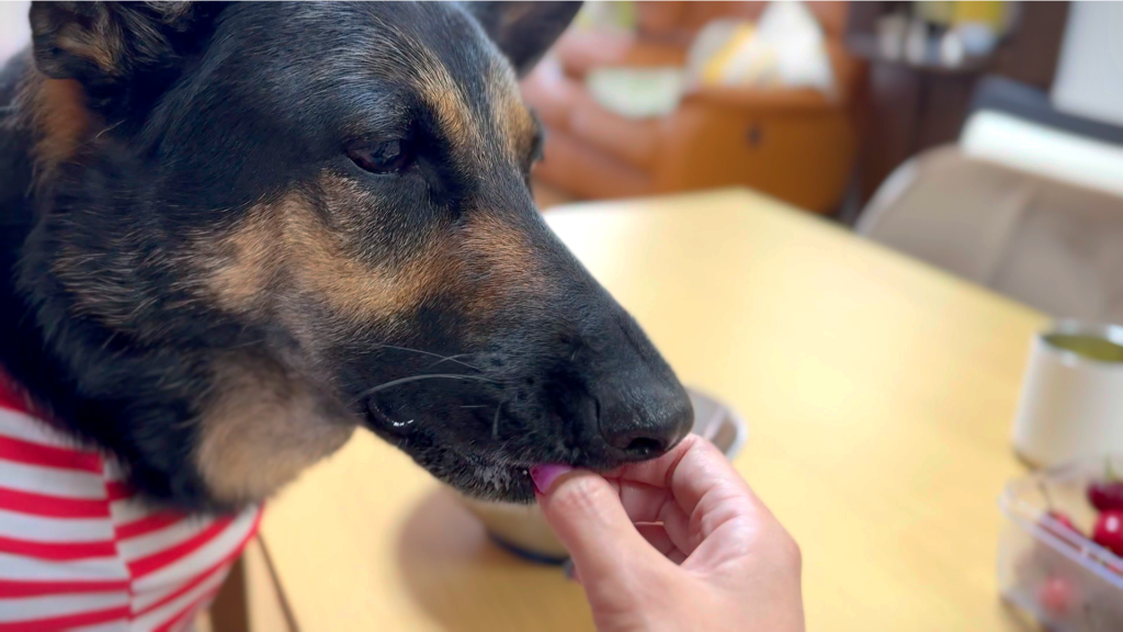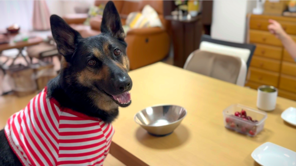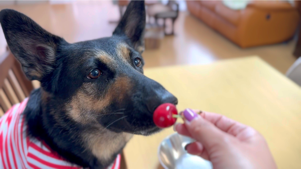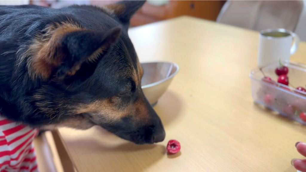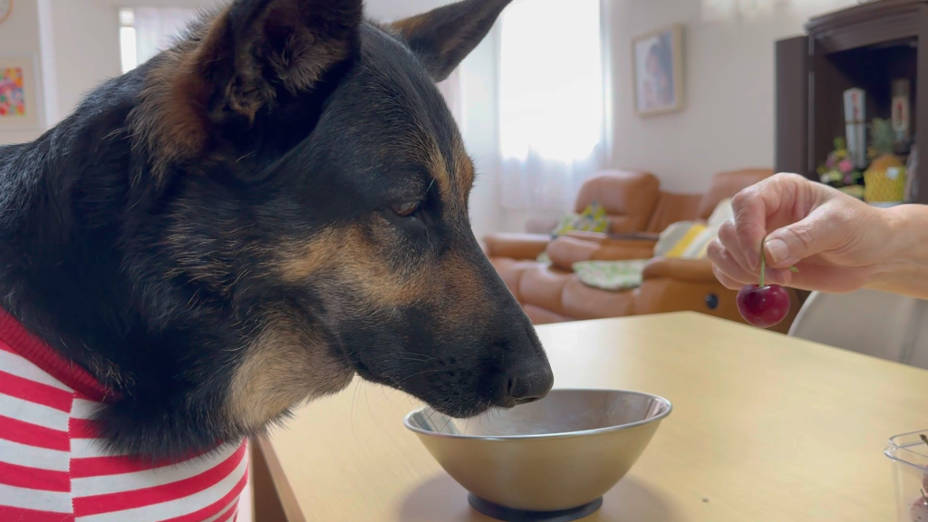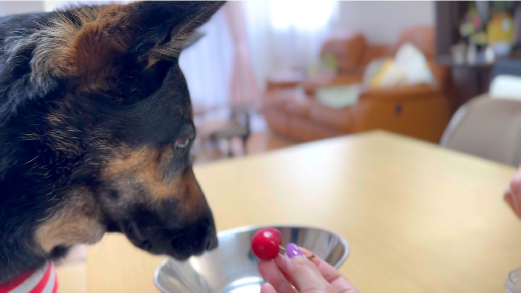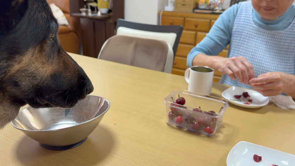 今日のおやつは愛犬が大好きなアメリカンチェリー!さて、一粒を何等分したら食べてくれるでしょうか?