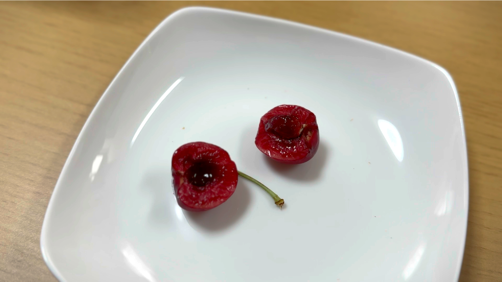 いくらアメリカンチェリーが大きいと言っても、一粒を4等分しないと食べないなんて