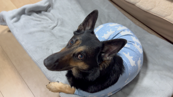 維桜さん、獣医さんで肛門腺を絞ってもらいました。