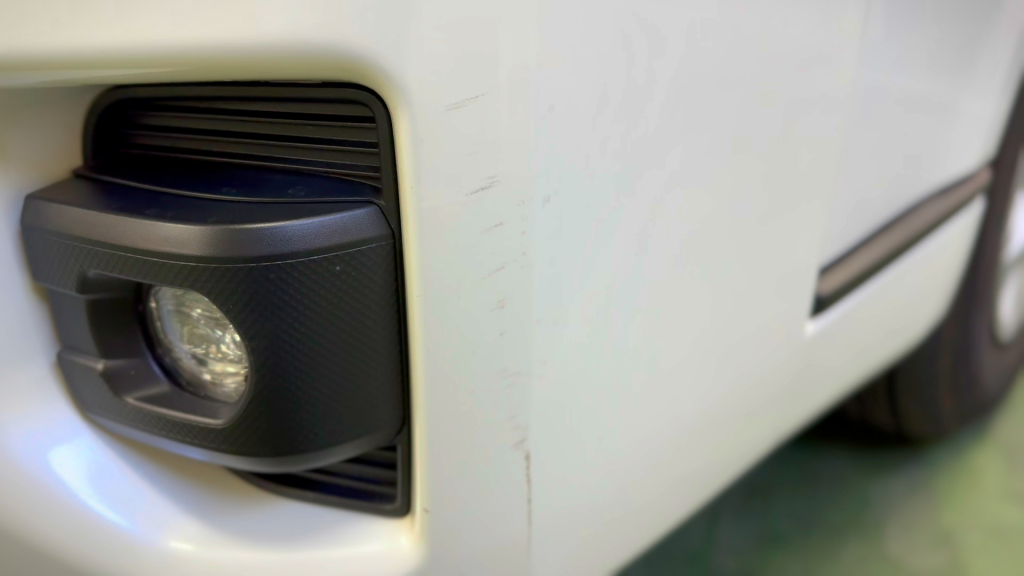 我が家の車の左前方部分に、擦った傷があるではありませんか!