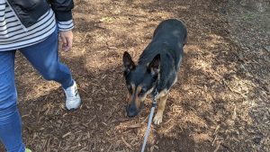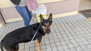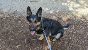 休日なのでいつもの公園へ散歩にやってきたシェパード犬、体調不良ですか??