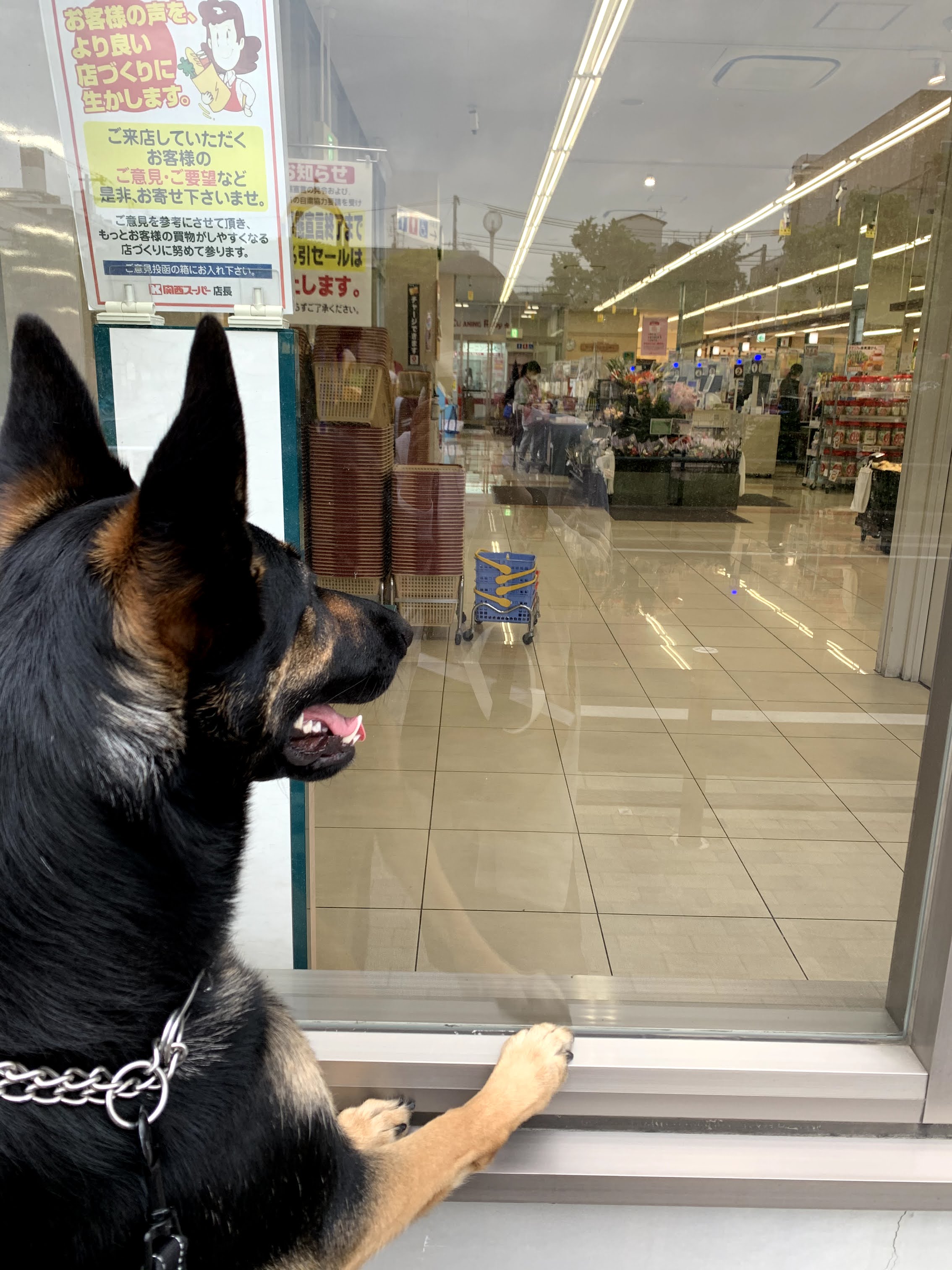 明日は朝から雨が降っていそうなので、お買い物は今日中に!と、散歩のついでにスーパーへ寄りました。