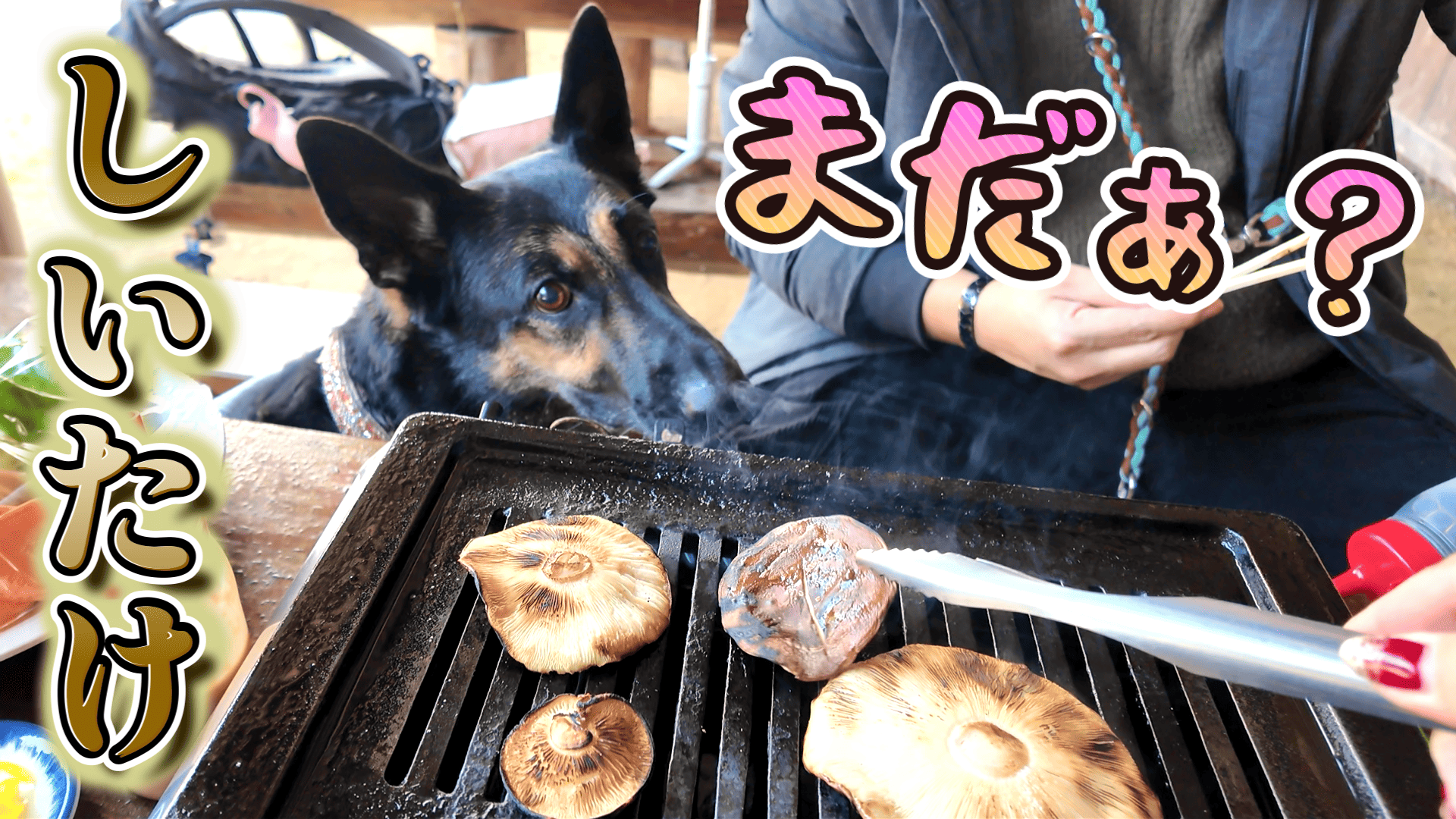 収穫したしいたけでBBQしたら、愛犬が待ちきれませんでしたw
