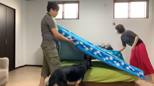 今日は、そんな寝苦しい夜をちょっとでも快適に過ごそうと、飼い主たちが冷感パッドをベッドに敷き始めました。