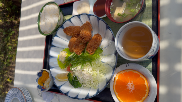 オヤジはカキフライ定食、私は名物の潮菜御前、そして