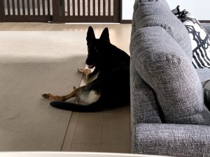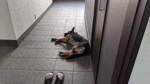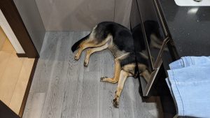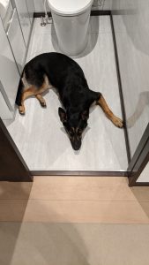 冷たい床を好んだ結果、こんなところにあんなものが!な犬