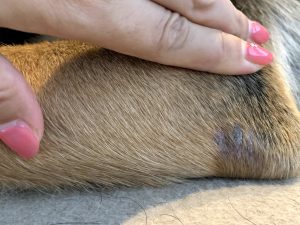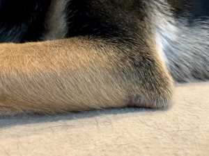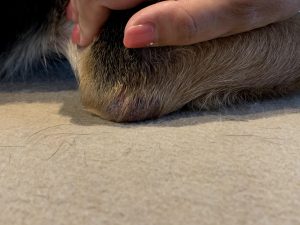 夏の間は、どうしても冷たい床に横になりたがるので、ワセリンを塗ってサポーターをしてもなかなか思うようには治らないかもしれません。