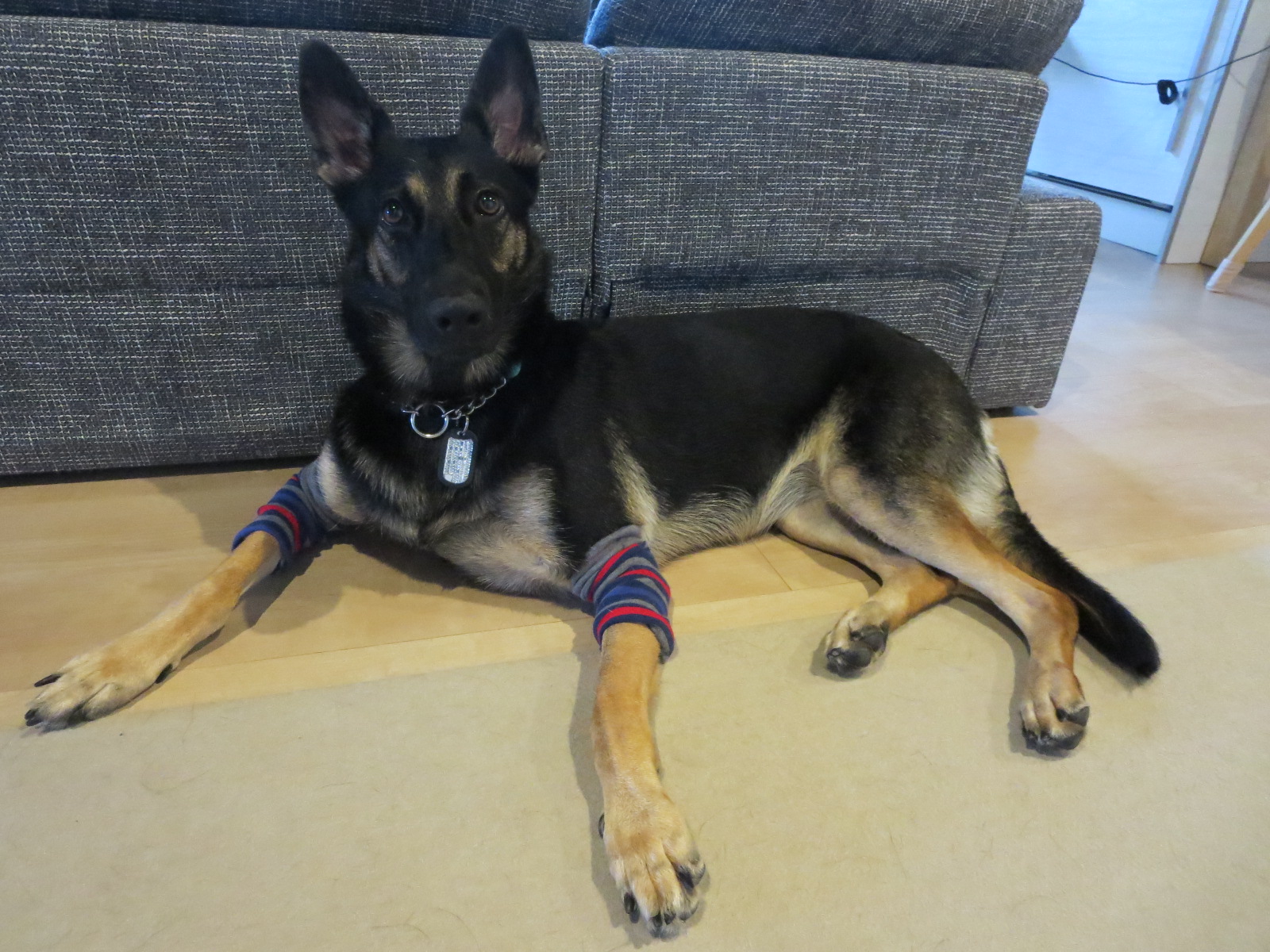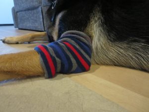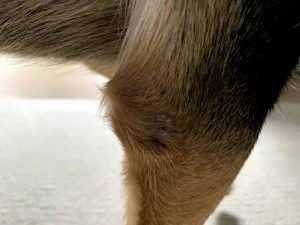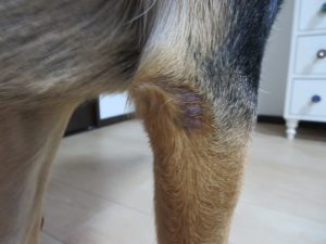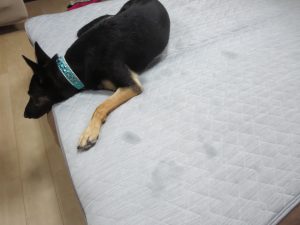 しかも、肘の部分は舐めにくい箇所のようで、肉球のように舐めまわしたりしないようです。