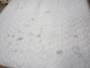 はい、そうなんです。こちらの無数に広がるシミ、維桜さんの肘タコに塗った白色ワセリンの油分なんです・・・。゚(。>ω<。)゚。