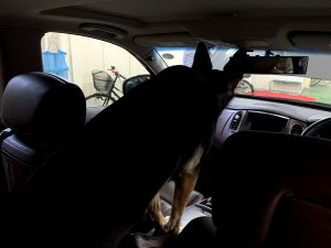 ということで、飼い主実父の車に乗せられてやってきたのは、どうやらスーパーオートバックスの駐車場のようです。