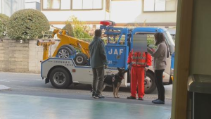 この時、駆けつけてくれたJAFのお兄さんが犬好きな方だったので、