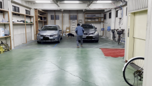 我が家の雨の日の過ごし方・・・それは、ひたすら車の周りを追いかけっこです!