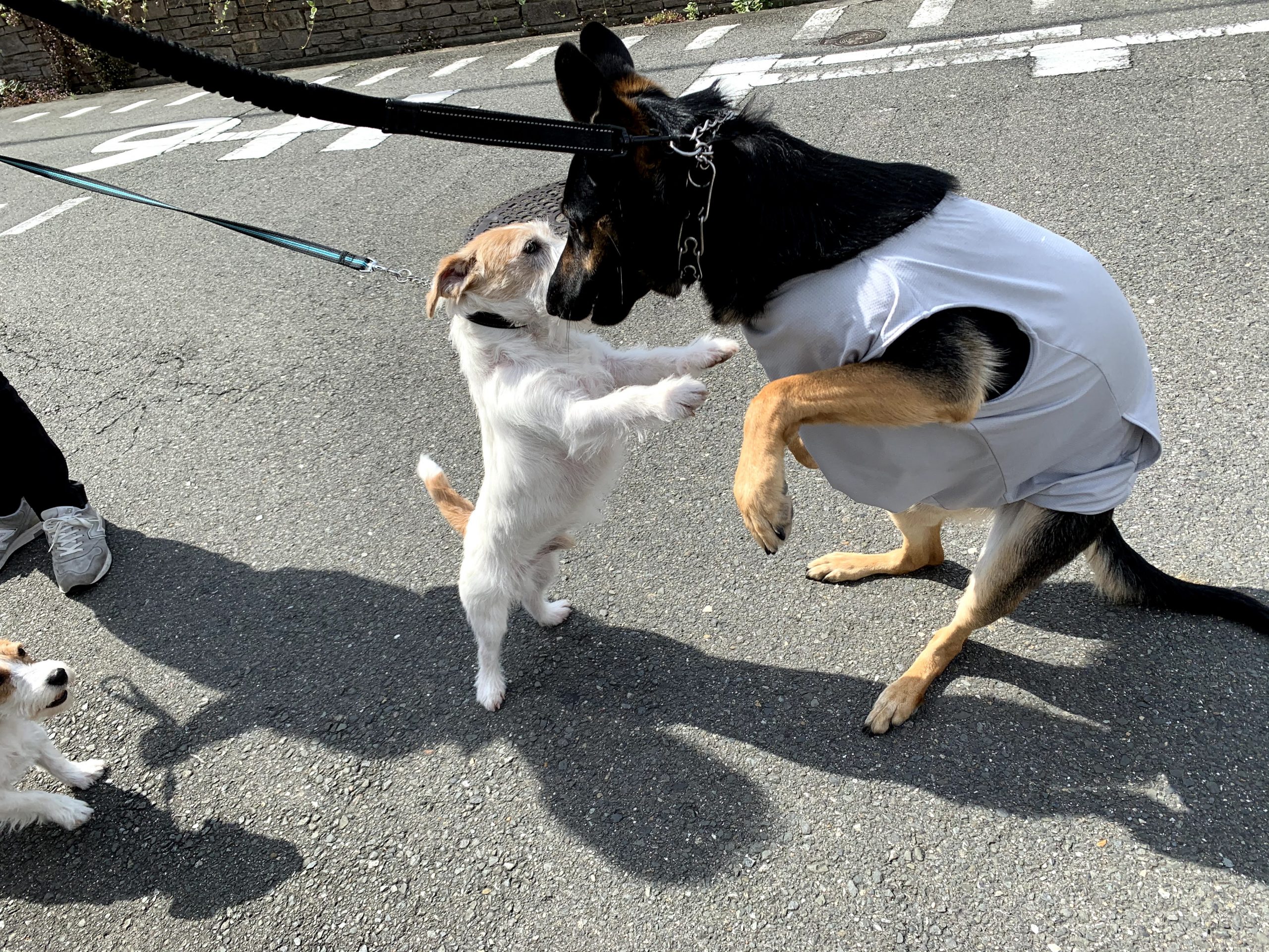 こんにちは! 飼い主です。 今日は夕方から雨、ということで、朝から蒸し暑い一日でした・・・(;´д`)ゞ でも、朝の散歩でお友達に会えた維桜さんは、ご満悦の様子です。 「ちょっとー、おっちゃんの釣りベストとか言わないでー」 ジャックラッセルテリ... -