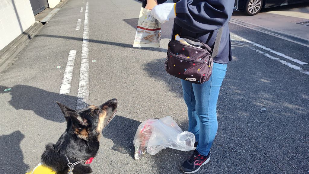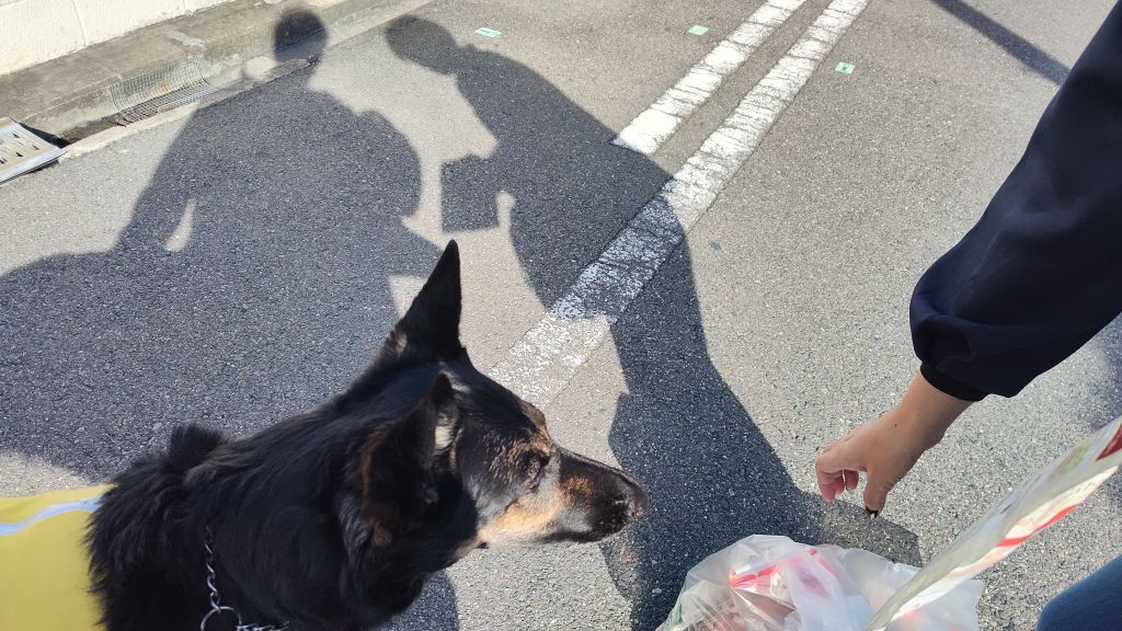 ちなみに、飽きてくると全然歩かなくなって、おやつをもらうまではその場でお座りです😭