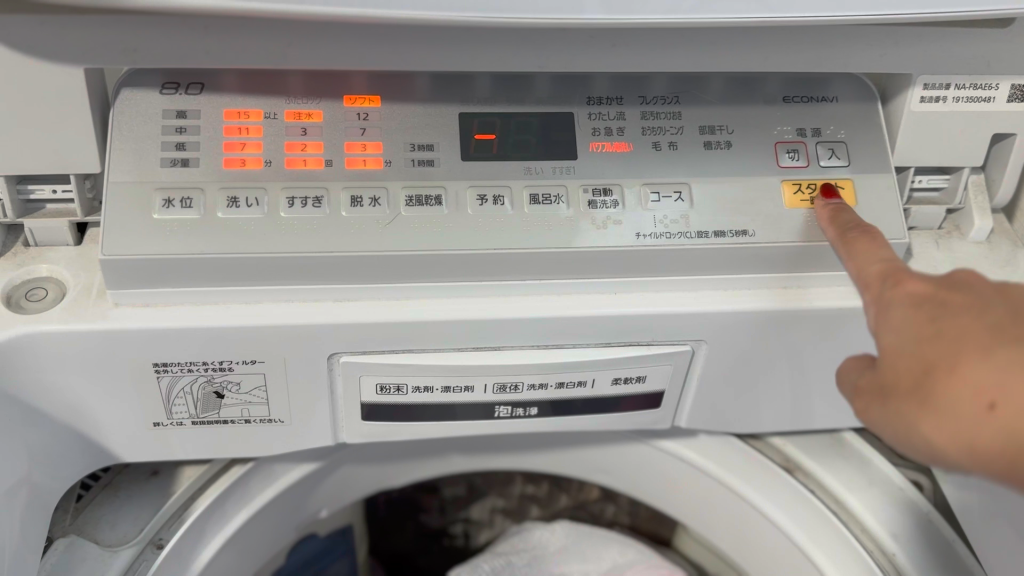 湯の花(洗剤)を入れたら、スタートボタンをポチッとな〜♪