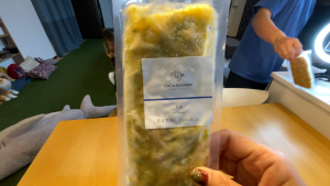 お昼ご飯の頃に、ちょうど解凍されていい感じになってました。