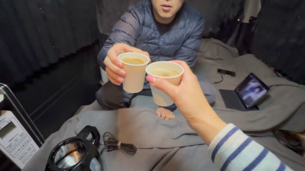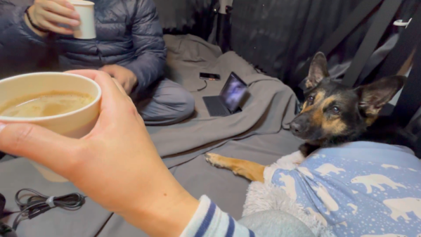車中泊をした夜、愛犬がすっかり寝入ってしまったので、飼い主だけで大人のカフェオレタイムを始めたら…w
