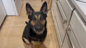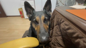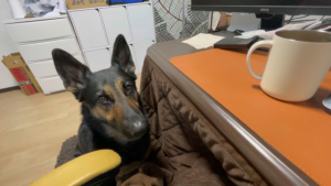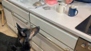 飼い主のコーヒーブレイクに鯛焼きを準備してたら、愛犬が隣りから呪いかけてくる・・・w