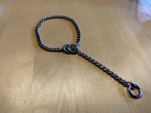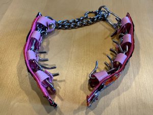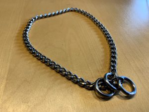 ←引くとチェーンが締まる仕組みで、訓練時にショックをかけられます。