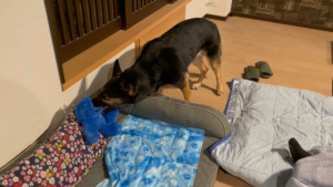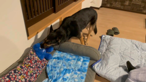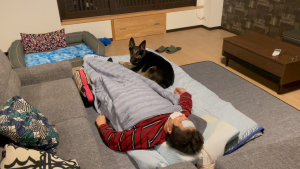 夜は、寝室のいつもの場所で寝る維桜さんでした・・・。