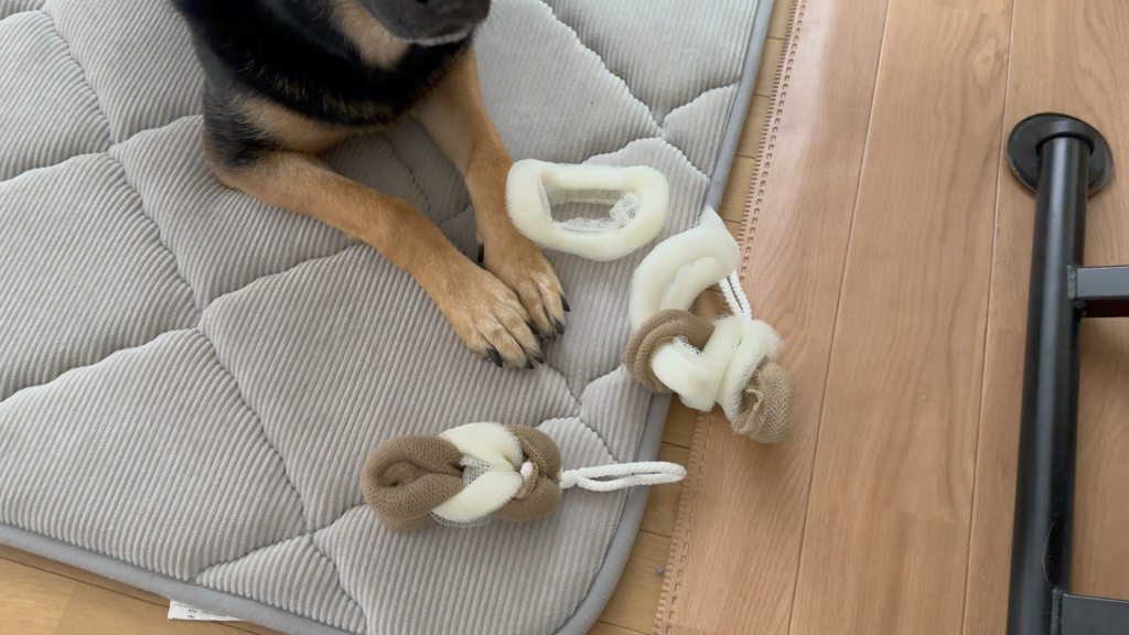 オババ「こら〜!それ、オジジが昨日ダイソーで買ってきた体洗うヤツ〜!」
