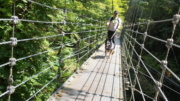 少し原生林をお散歩したら、2つ目の吊り橋「奥かえで橋」に到着しました。