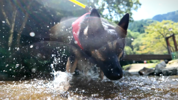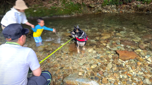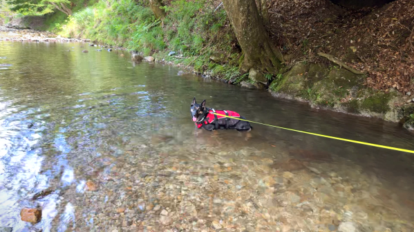 【兵庫県宍粟市】滝のふもとで川遊びしたら、愛犬がお風呂気分で上がってきませんw【原不動滝】