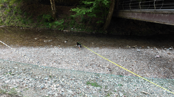 キャンプ場の目の前を流れる八丈川へ吸い込まれていきましたw