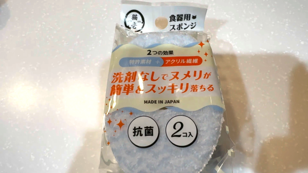 ということで、猫ちゃんのフェイスマークがかわいい食器用スポンジ、