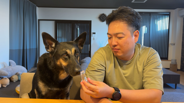 こちらが、ジャーマンシェパード型の犬の毛収納ボトルです!