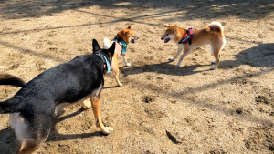 さて、維桜さんは仮設のドッグランでワンちゃんたちと仲良く遊ぶことができるでしょうか?