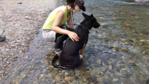 ←すっかり水嫌いも克服したのか、川遊びを楽しんでいます🌊