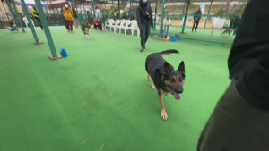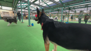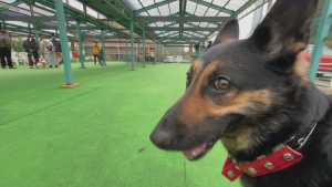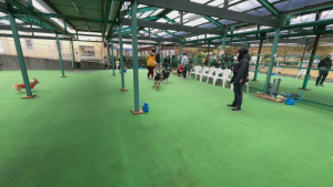 「あたしは今、屋根付きドッグランに来ていまーす!」