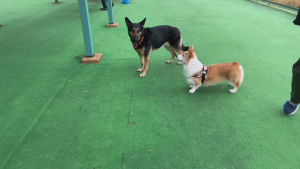 向こうの方で急にワンちゃんたちの小競り合いが始まりました。