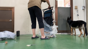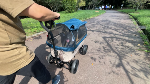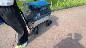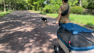 大型犬用のペットカート、果たして維桜さんと飼い主は使いこなすことができるのでしょうか?