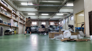 オヤジが一生懸命、梱包を解いてカートを組み立てていますが、