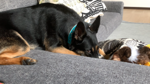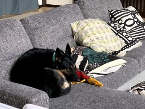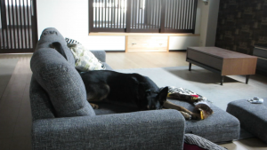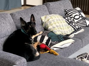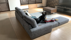 すると、飼い主♀からあぼーん鳥を奪い去った維桜さん、おもむろにソファへ持って行きました。