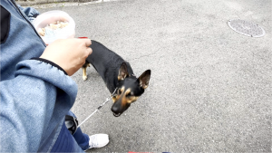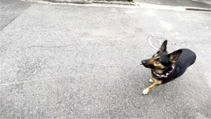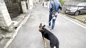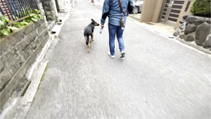 「と、こんなふうにして、いつも飼い主を散歩へ連れて行ってます。飼い犬の心、飼い主知らずですわね。じゃ、ごめんあそばせ~」