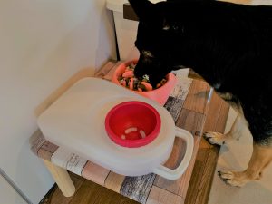 そのため、水がこぼれにくい仕組みになっているのですが、それに加えて、ワンちゃんの水のガブ飲みを防いでくれている気がします。