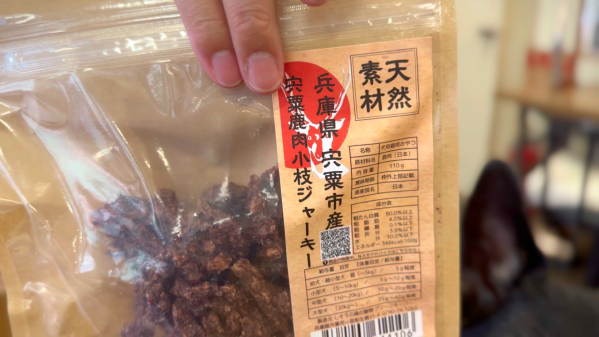 そして、維桜さんはお店で販売されているご当地(宍粟市)産の鹿肉ジャーキーごはん!