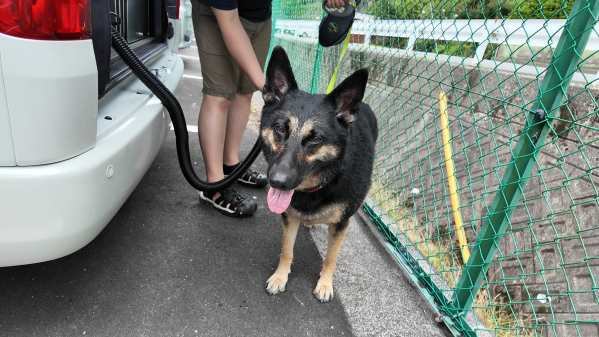 “犬ファースト”な「道の駅ちくさ」さんの横を流れる千種川で思いっきり泳いだ維桜さん。