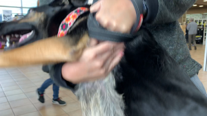 ↑しっかり持ち上げて、後ろ足からカートに入れようとしたら・・・↓