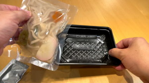 パッケージには、「ラップをして電子レンジで20秒温める」とめっちゃ美味しくなる的なことが書いてあった(オヤジ談)そうなので、せっかくなのでチンしてみます。