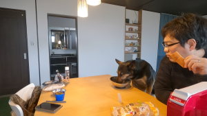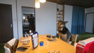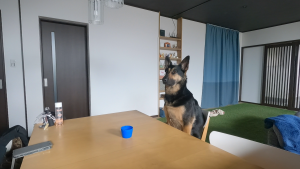 ご飯の気配を察知すると、誰よりも先にイスに座ります。