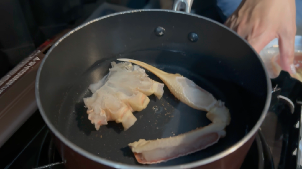 じゃあ、維桜さんが寝てる間に、維桜さん用のカニ&ヒラマサ鍋の支度をしましょう。