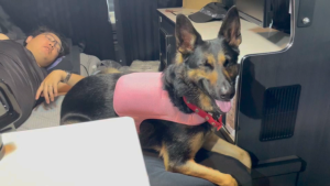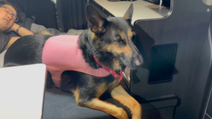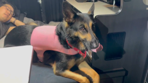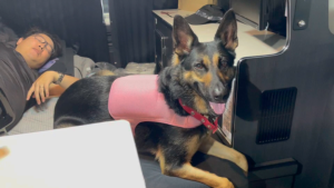 ポータブルエアコンの真ん前に陣取ってるからなんです・・・。